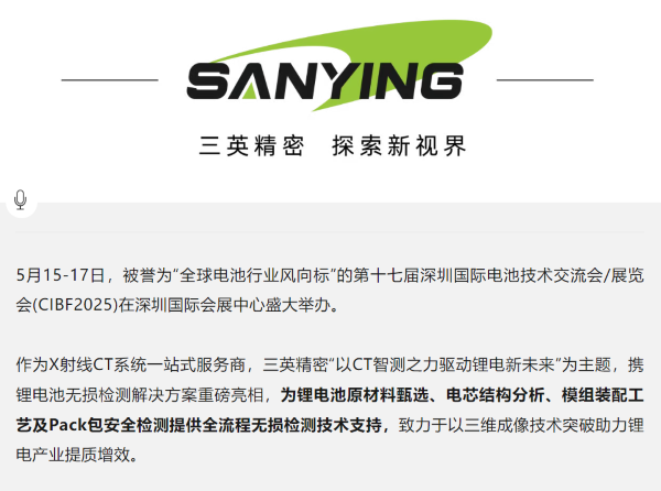 以CT智檢之力 驅動鋰電新未來 | 三英精密閃耀CIBF2025